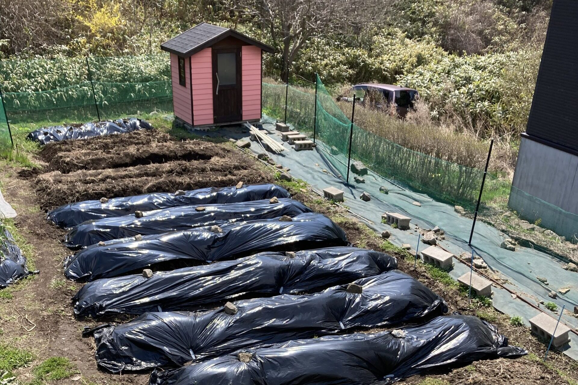 - 家庭菜園レベル(スコップ、黒マルチなど市販資材は最低限)