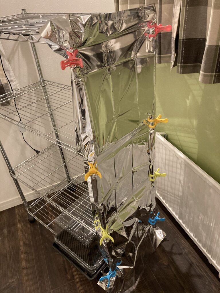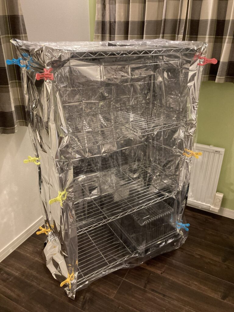 ① ラックの上面+側面3面(背面・左右)をアルミシートで覆う