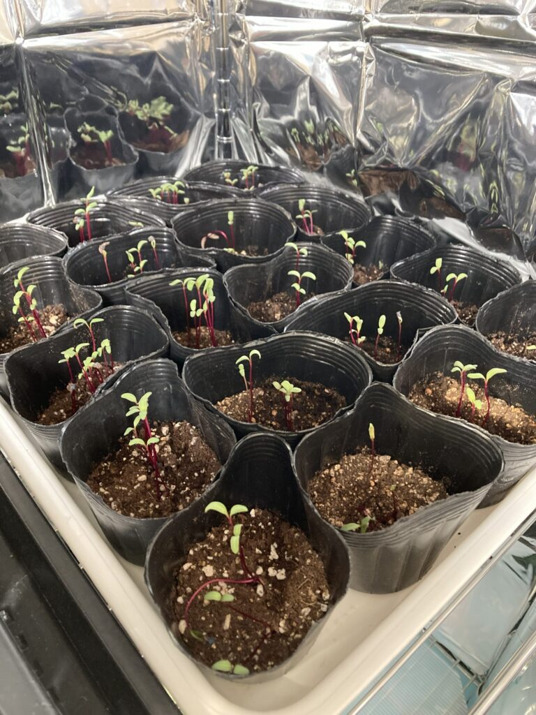 現在、ビーツは育苗箱を卒業して、2段目で育成中です。