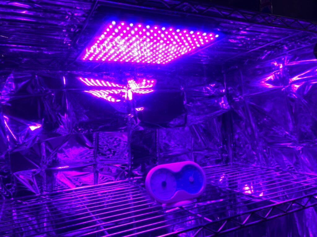 アルミシートの乱反射でラックの広範囲に光が届くようになり、